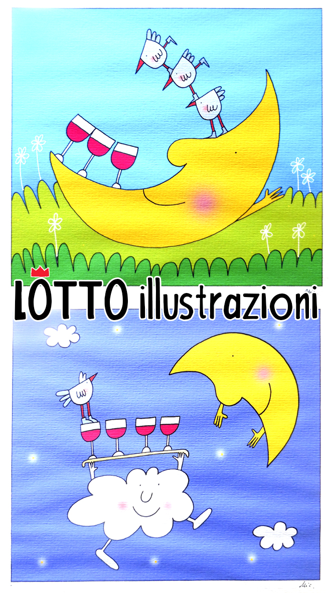 Lotto di due illustrazioni sul tema “Vino” di Nicoletta Costa
